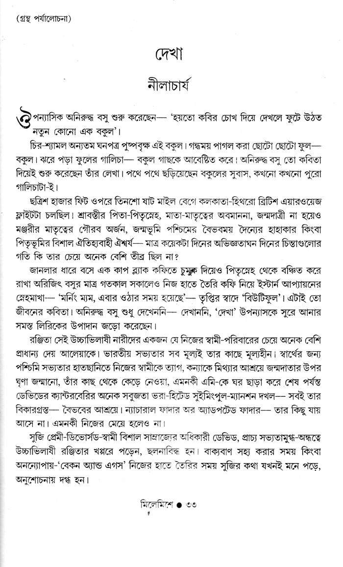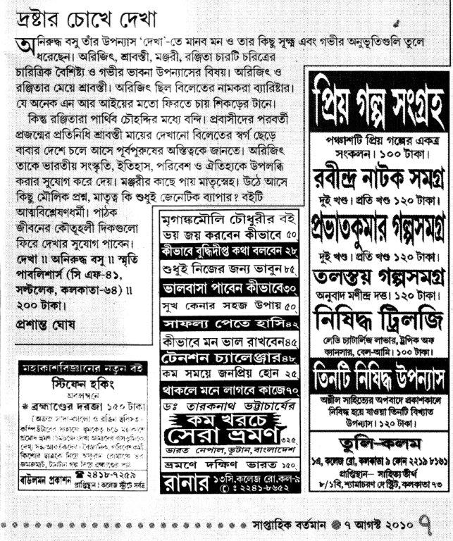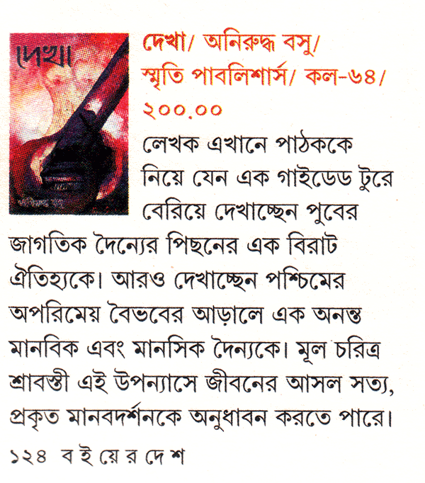 অনিরুদ্ধ বসুর দুটি বই খুব সদ্য পড়লাম – দেখা আর তোমাকে। অত্যন্ত সুলিখিত, সুখপাঠ্য রচনা। ঝরঝরে ভাষা, কাহিনি বিন্যাস পাঠকের আগ্রহ শেষ পৃষ্ঠার দিকে এগোনর জন্য আবিষ্ট করে রাখে।