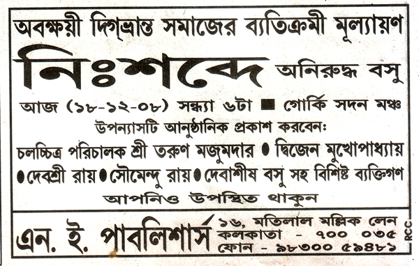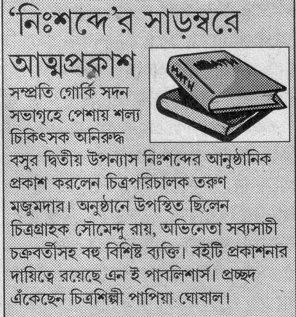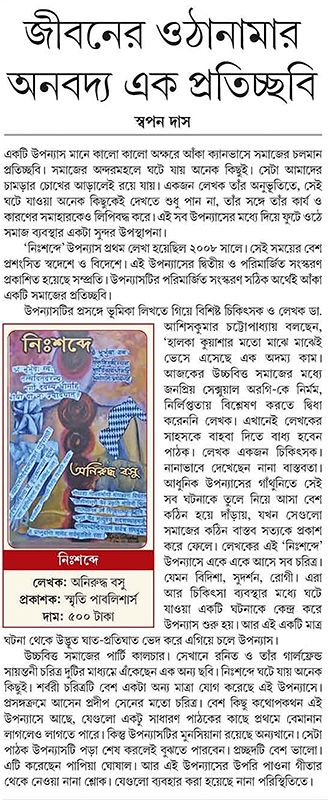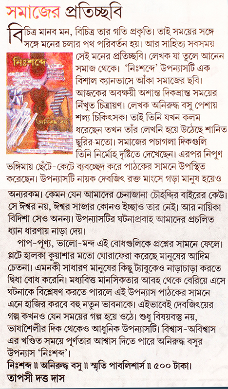 The novel Nishabde written by Dr Aniruddha Basu is based on the complex relationship of people of modern civilized society. The selfishness, rate-race and, endless ambitions of people is dragging the civilisation towards a dark horizon. Dr Bose's thought and concept is far ahead than his contemporary writers. A good book really.