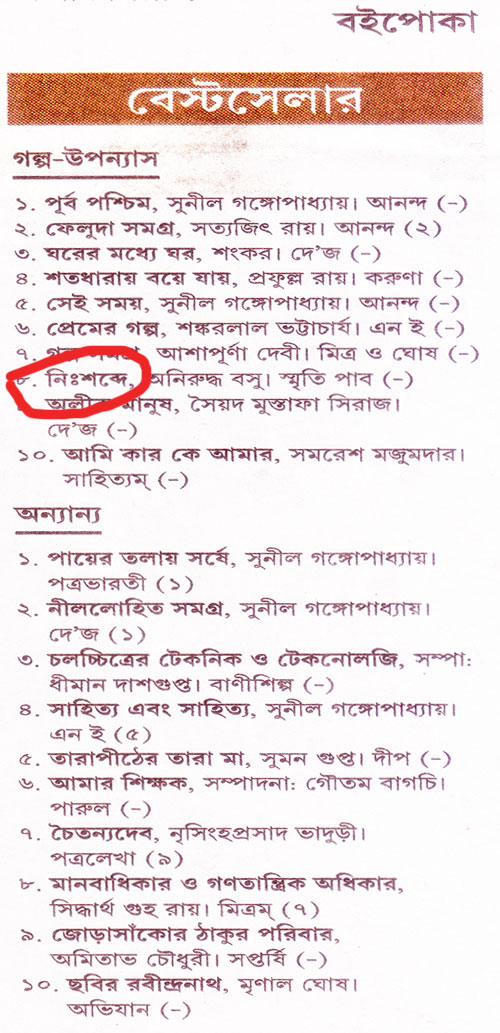 আমার প্রথম উপন্যাস ‘অন্বেষণ’-এর সাফল্যের পর, ‘নিঃশব্দে’ দ্বিতীয় উপন্যাস। বাস্তবধর্মী গণ্ডিভাঙা লেখা বলে বহু প্রকাশক প্রত্যাখ্যান করেন। অবশেষে ২০০৮-এ প্রকাশ হওয়ার পর তুমুল সারা ফেলে। বারবার বেস্ট সেলারই শুধু হয়নি, লন্ডন বুক ফেয়ারে নতুন বাংলা চিন্তাধারা হিসেবে বিশেষ স্থান পায়। দিল্লির একটি নিরপেক্ষ সার্ভে রিপোর্টে (A Survey among visitors to the Kolkata Book Fair and exhibiting publishers, 2009) প্রশংসিত হয়।
